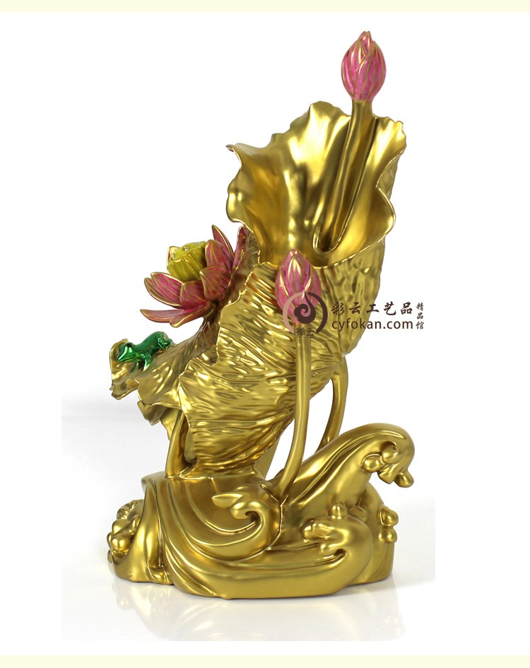 荷花笔筒装饰品家居摆件 手工雕花莳绘贴金工艺品 办公送手工礼品